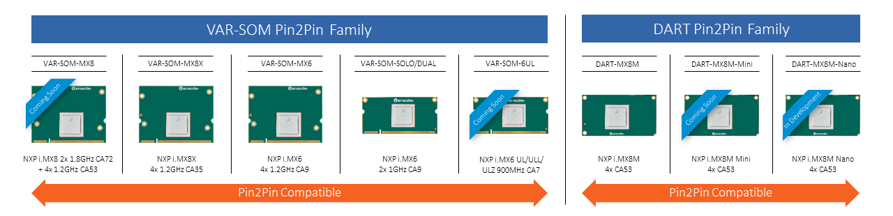 Pin2pin-Produktfamilien von Variscite – Zwei hochskalierbare Produktfamilien basierend auf NXP-Prozessoren: